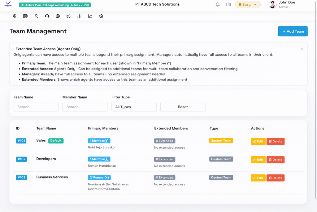 Enhanced Organizational Control & Team Access Architecture Pembaruan modul User dan Team Management dengan peningkatan struktur manajemen anggota, sistem akses berbasis role